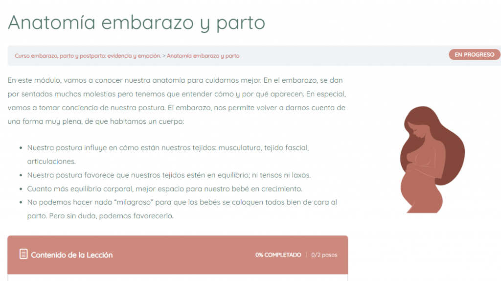 El curso es un camino de aprendizaje sobre tu propio cuerpo, tu anatomía y el proceso de embarazo, parto y maternidad.
