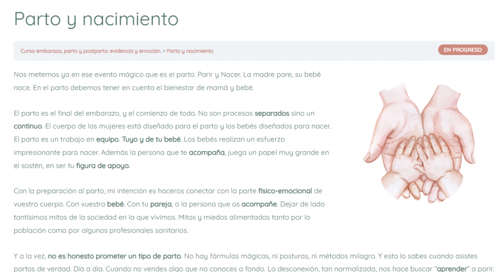- La evolución del curso online “Parto y conexión”. Desde mayo 2020, acompañando online a más de 1500 mujeres y parejas.